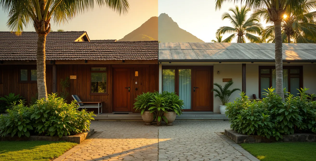 Cette exigence se traduit par des actions concrètes et visibles. Prenons l’exemple d’un hébergement comme Les Lataniers à Piton Saint-Leu. Sa labellisation n’est pas un simple autocollant sur la porte. Elle est la conséquence d’investissements matériels et de procédures précises : chauffe-eaux solaires pour réduire la dépendance aux énergies fossiles, récupération des eaux de pluie pour l’arrosage, éclairage par lampes solaires, conception favorisant la ventilation naturelle pour limiter la climatisation, tri sélectif poussé et présence d’un composteur pour valoriser les déchets organiques. Ces éléments constituent la « preuve par l’action », un indicateur bien plus fiable qu’un discours marketing.