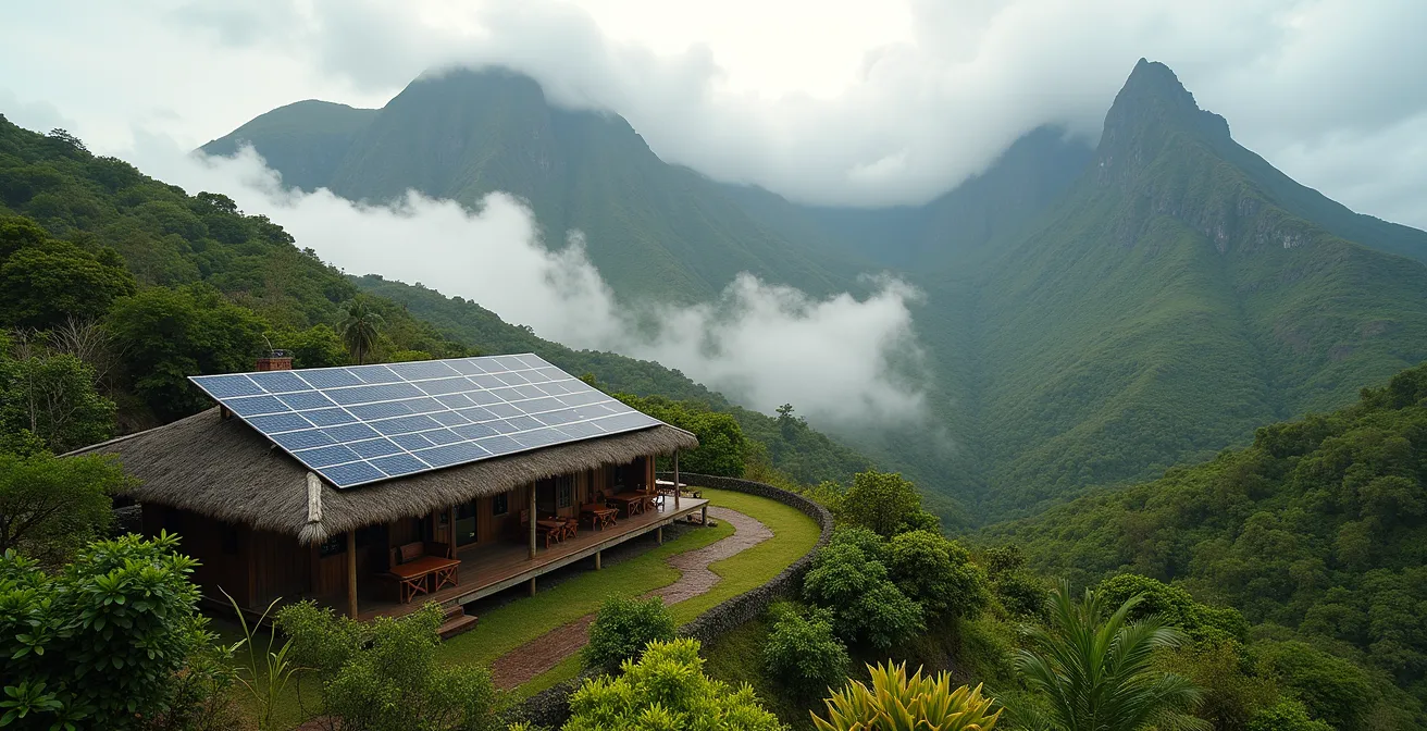 Imaginez la scène : après une journée de randonnée intense dans les cirques de La Réunion, vous arrivez dans votre gîte écologique, un havre de paix niché dans la nature. L’envie de prendre une longue douche chaude et d’utiliser votre sèche-cheveux est pressante. Pourtant, une affichette vous informe que la douche est limitée à 5 minutes et que les appareils de forte puissance sont interdits. Cette situation, souvent perçue comme une contrainte frustrante, est en réalité la porte d’entrée pour comprendre la véritable ingénierie de l’autonomie en milieu isolé.